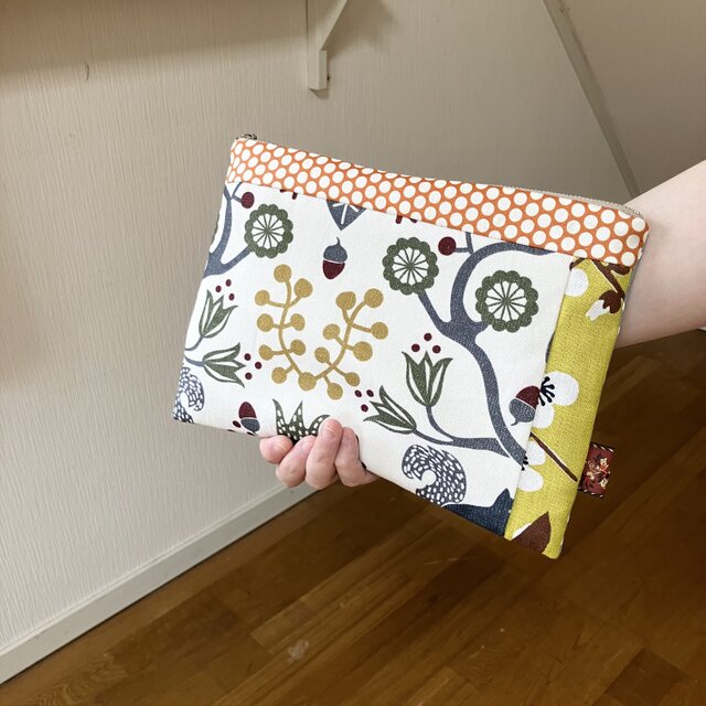 大きなポーチ25cmファスナー 可愛い植物柄とドット