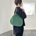 当店大人気の牛床ベロア丸型トートに、肩掛けができるMサイズが登場しました!