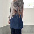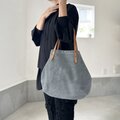 持ち手の革は3.5mm程ある極厚の牛革シュリンクオイルレザー、しかもオイルをたっぷりと含んだ多脂ヌメで、厚みがあるのにとても柔らかく、使い込むほどに味わいが出てきます^^革素材を存分に味わって頂きたいので、裏地は付けずスエード調の床面をそのまま使用しています。