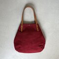 『2025登場Mサイズ』牛床ベロアと極厚オイルヌメの丸型トートバッグ M-size【ワインレッド】
