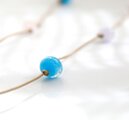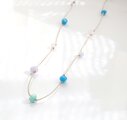 今まで作りためてきた小さな雫型のガラスビーズたちを、コットンコードで繋ぎ合わせて制作したロングネックレスです。