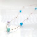 小さなガラスの雫とコットンコードのロングネックレス 「春天の花舞」