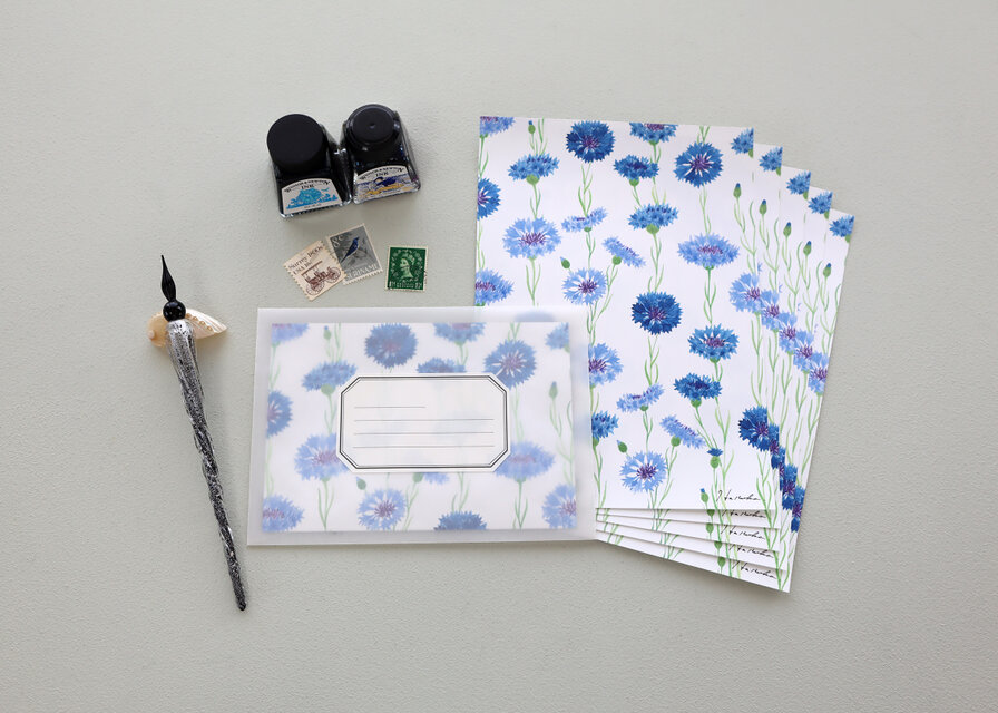 透明水彩で描いた矢車菊を便箋にしました。