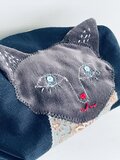 グレーの別珍でブルーアイの猫をパッチワーク