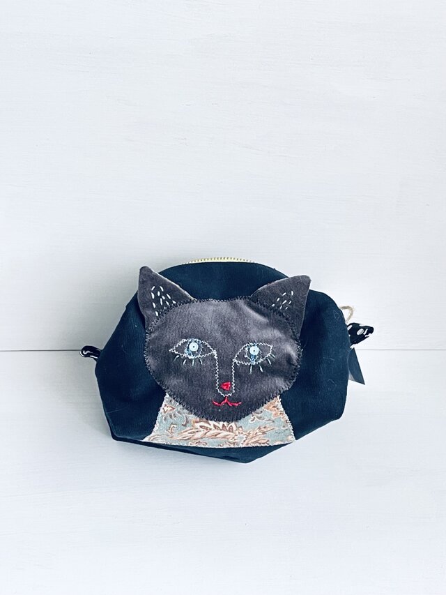 目ヂカラグレー猫のポーチ
