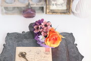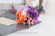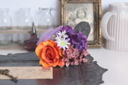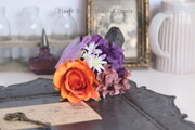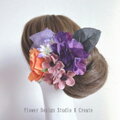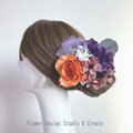 オレンジの薔薇とモーブピンクのアネモネの髪飾り フラメンコ ダンス 髪飾り 発表会 薔薇 花飾り オレンジ ハロウィン アネモネ