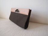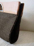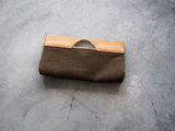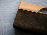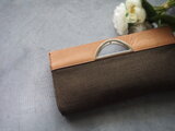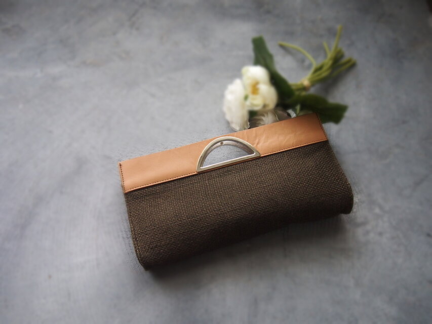 昭和レトロ 横長バック レザーリネンコンビ クラッチバッグ 和装バック バックインバック