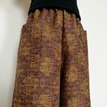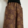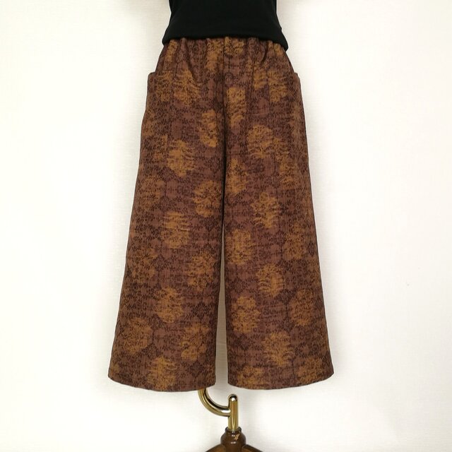 丸や細かな文様の紬をガウチョパンツにリメイクしました。