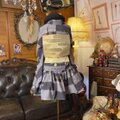 ❁︎着崩れ防止、強度を持たせるために太めのウエストゴムを使用しております。また、お着物の形を最大限に活用した特性とスカートのふんわり感を演出するためのギャザー仕立てを行っている為、ウエスト付近の布が厚くなっています。付属の帯ベルト等を装着するとお写真の様に目立ちません。