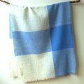 ごく薄いナチュラルカラーと明るいブルーで大きく織り分けました。