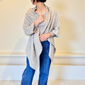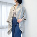 前下がりのドレープラインが美しく、軽く羽織るだけで洗練された印象に。