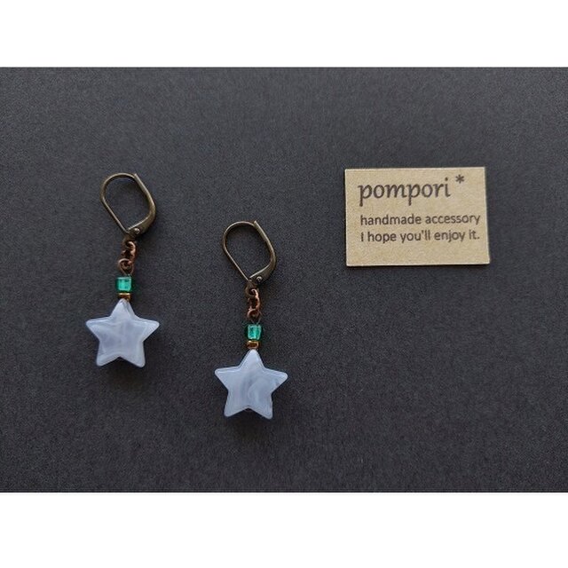グレーマーブルの★をポップな色合わせのピアスにしてみました。