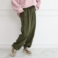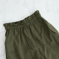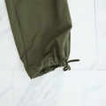ウエストはゴム仕様で穿きやすく、シルエットの微調整ができる裾紐を絞り。