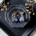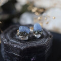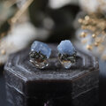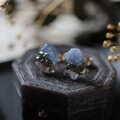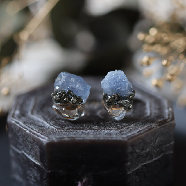サファイアとダイヤモンドクォーツ、パイライトが共生し結晶化した、創造上の鉱物「Unionite」のピアス。
