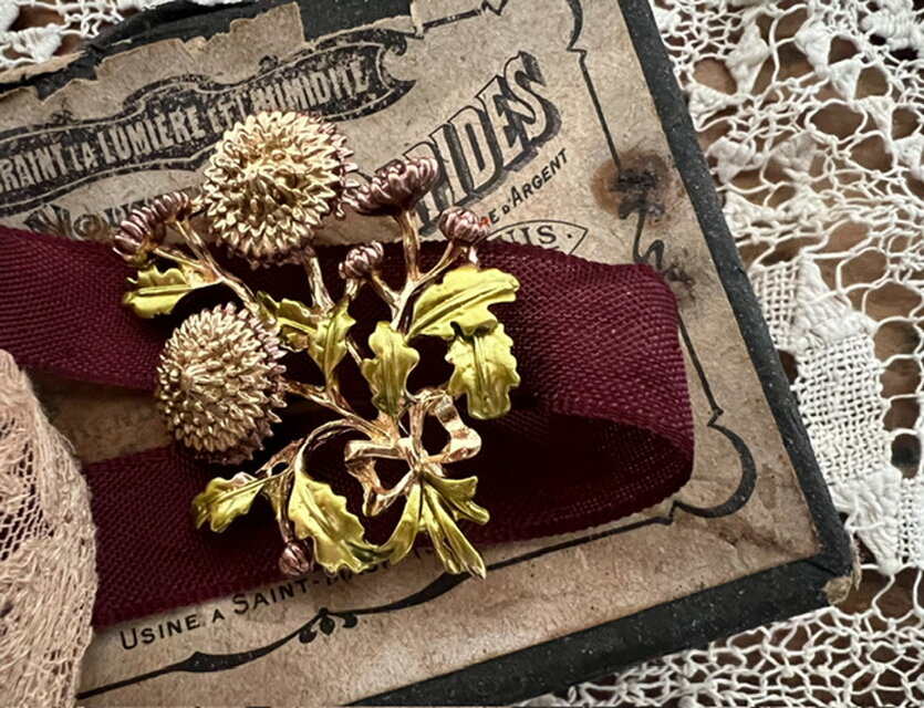 淡いピンクとグリーンが美しくマッチしたブローチです。