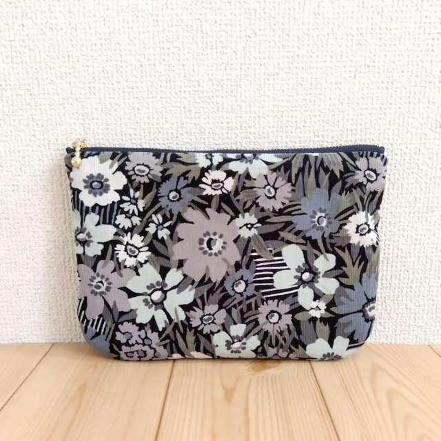 リバティプリントのコーデュロイ生地を使用した、フラットポーチです。