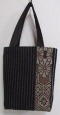 8491 大島紬と唐桟縞の着物で作った手提げ袋