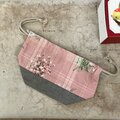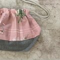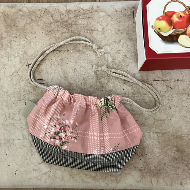 こちらはコットン素材お花模様とチェックの2トーン生地で作った巾着袋です。