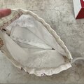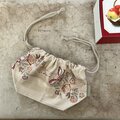 こちらはコットン素材アンティーク風のお花模様生地で作った巾着袋です。