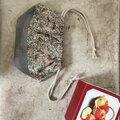 大切にしまっておいた少しづつの生地をパッチワークして作った巾着袋です。