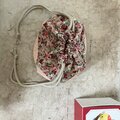 こちらはコットン素材お花模様とふんわりピンクの生地で作った巾着袋です。