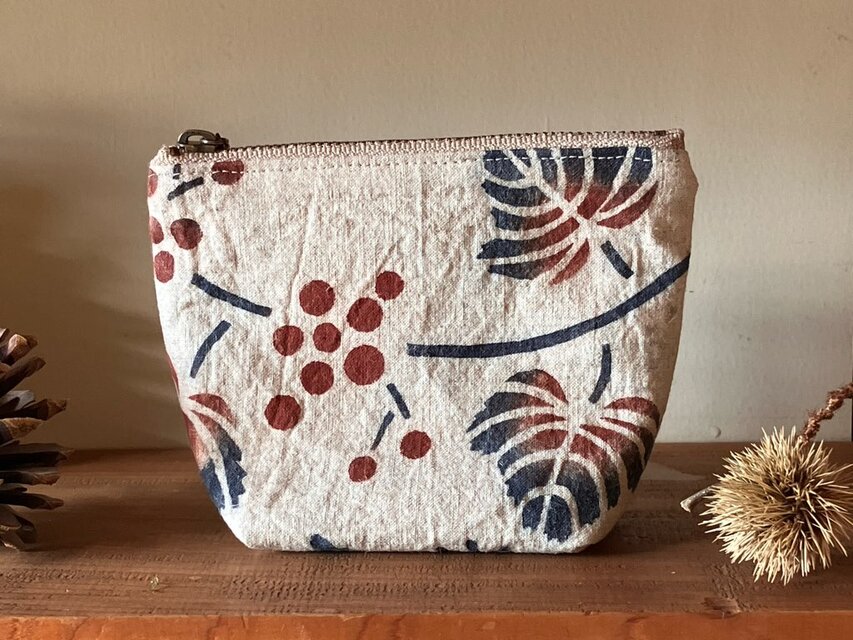 秋の草花の型で染めた小さめのポーチです。コロンと可愛い形になりました。