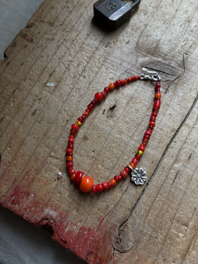 *古の赤➕ブレス。@ホワイトハート赤系+柑橘系+ボヘミアの赤いビーズ類など