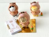 箱の中に、たくさんの毛布があり、その中にとても小さなグレートラネコさんがイビキをかいて、お昼寝をしておられました。あれ〜旗とか蚊取り豚さんがいないなぁと思っていましたところ、さらに小さな毛布にくるまって登場。なんとも言えず、素晴らしい作品で、とても気に入ってます。眺めてると今日一日の疲れが全て飛んで行ってくれます。本当にありがとうございました。どうぞ、これからも素晴らしい作品創造を期待しています。
