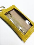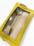 内側のリングに鍵をお付けし、ファスナーで収納できる仕様になっており、反対側から中身が見えるようにビニール素材の窓をお付けしております。