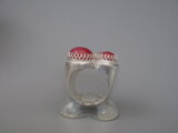 しずく型の端に赤色、遊び心満載で、とても珍しく楽しいリングです。