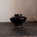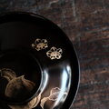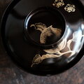桃と花◆古輪島塗 漆芸黒塗沈金蓋付碗 漆器 骨董・antiques 古民家 明治〜大正期 個体A