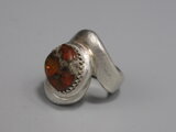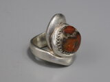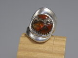 リングのサイズは13号、重さは17g、最大幅は28mm、手のひら側は6mm、金属部分は純銀です。