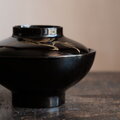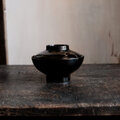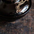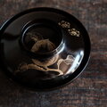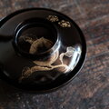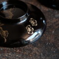 桃と花◆古輪島塗 漆芸黒塗沈金蓋付碗 漆器 骨董・antiques 古民家 明治〜大正期 個体B
