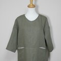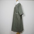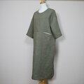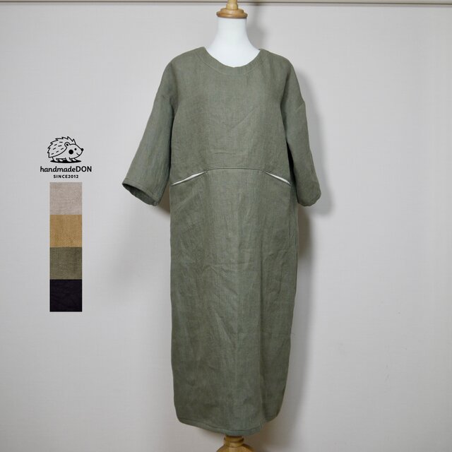フロントぽっけのワンピース◆ウィンターリネン(厚手15番手・リネン100%)◆オリーブ(ポケット内布:生成り)◆フリーサイズ