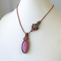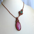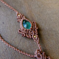 魅力的な二つの石が引き立つように明るめのコードで繊細に編み込み、上品で女性らしい1点ものマクラメ編みデザインペンダントに仕上げました。