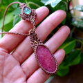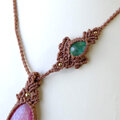 ロードナイト(インド産)・エメラルド(コロンビア産) マクラメ編みペンダントネックレス 1点もの クリスマスギフト 3630