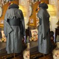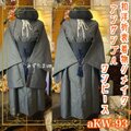 【 着物リメイクワンピース アンサンブル 帯サッシュベルト付き 和洋折衷 ハンドメイド レトロ 古着 青墨×微細花菱幾何 aKW-93】