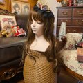 黒のレースフリルを土台に、藍・柿色・金茶の古典着物生地をふっくら重ねたミニボンネット風デザイン。トップはシャンパンベージュのサテンリボンをクロス。ぐるりのパールが上品な艶を添えます。アンティーク感のある配色が大人可愛く、前・斜め・サイドどこにつけても立体的に映える存在感。軽量の細カチューシャ土台で着け心地も◎。黒コーデや和ゴシック、着物・浴衣・ヴィンテージワンピまで幅広くマッチする、世界にひとつの一点物ヘッドドレスです。