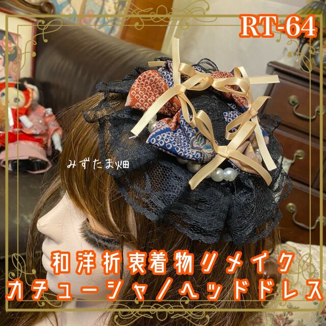 着物リメイク おりぼん ティアラ ヘッドドレス トークハット カチューシャ ヘアアクセサリー 和洋折衷 和ロリータ RT-64