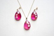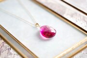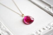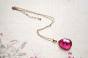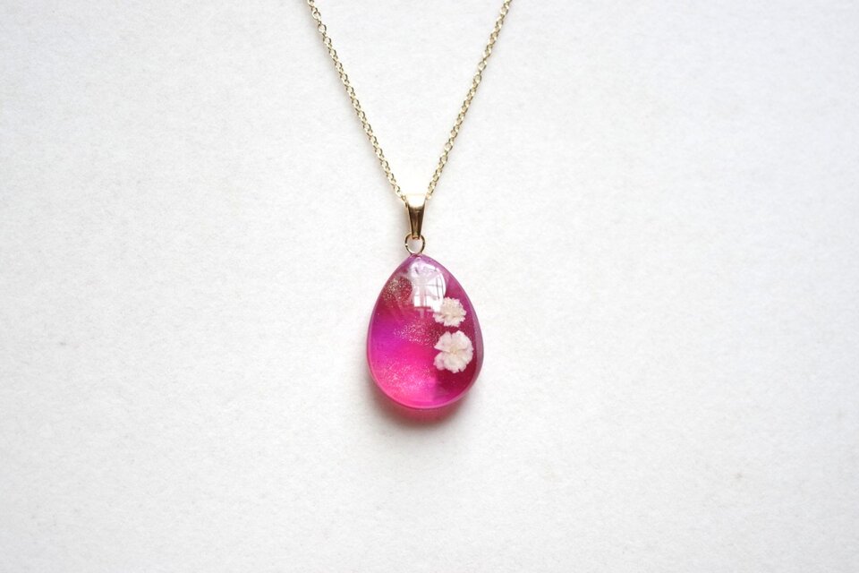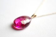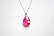 ドロップ型のレジンにお花を二輪咲かせた可憐なペンダントです。