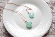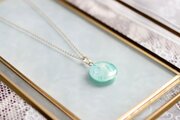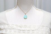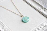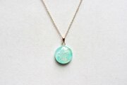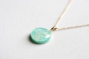 鮮やかでありながら優しい緑色の空に飛び立つ鳥を一羽描き加えた、小さくも雄大な世界を感じられるペンダント。