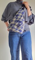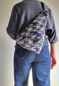 シックなハウンドトゥース柄のジャガード生地を使って、ボディーバッグを作りました。