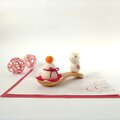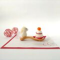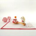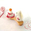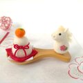 木製の茶さじの上に、羊毛フェルトで作った鏡餅と白馬をのせました。