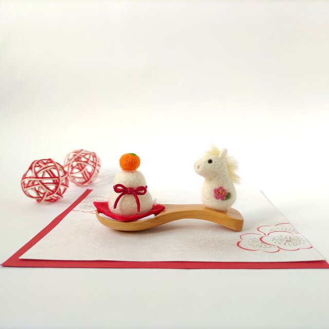 【受注制作】2026(午年)干支飾り・午& 鏡餅(スプーンシリーズ小)☆羊毛フェルト