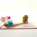木製のティースプーンの上に、仲良く寄り添う馬の親子と、初日の出の富士山をのせました。