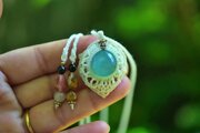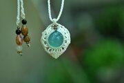 ◆このたびはホワイト色の蝋引き糸を使用しマクラメ編み装飾を施しました。