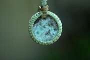 ◆このたびはミント、ホワイト色の蝋引き糸を使用しマクラメ編み装飾を施しました。