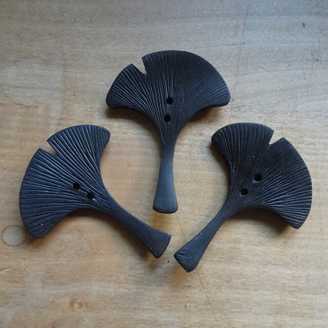 紫檀を削り銀杏の葉っぱ型ボタンを作りました。