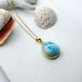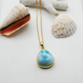 ドミニカ産ラリマー しずくペンダント|ドミニカ産カボション|SV925芯×18KGP【1点物】