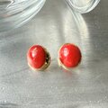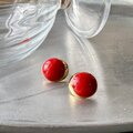 ゴールドトーンをベースに赤いエナメルペイントが印象的なオーバル型ピアス。